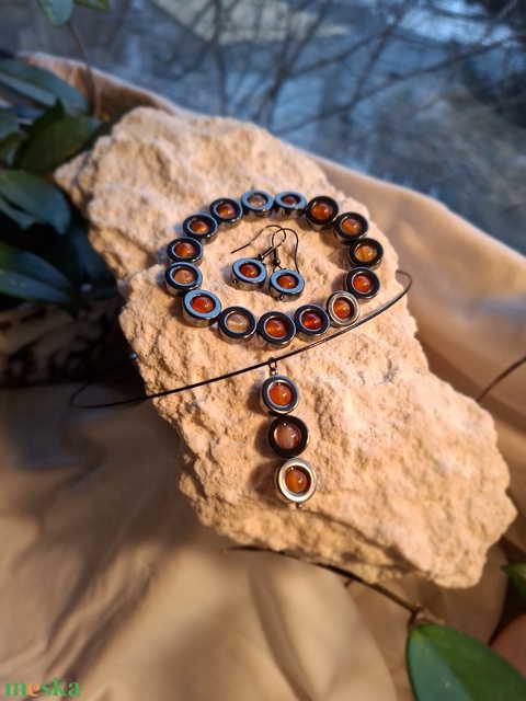 Hematit–Karneol ékszerszett - Parázsmag (karkötő + fülbevaló + medál)