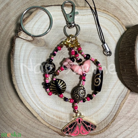 Fekete-rózsaszín gyöngy kulcstartó