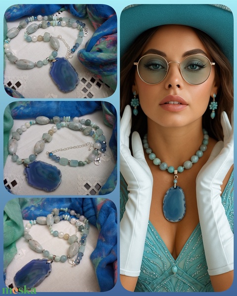FÉLDRÁGAKŐ/ÁSVÁNY/ -gyöngysor, nyakék