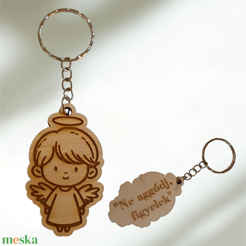 Őrangyal Kulcstartó – Gravírozott Fa Talizmán Pozitív Üzenettel