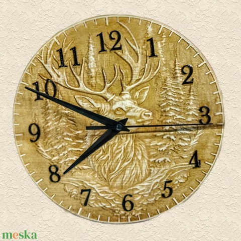 Szarvasos faragott fa 3d falióra