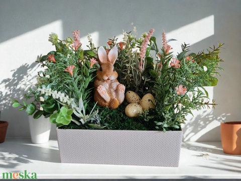 Húsvéti asztaldísz nyuszival – tavaszi kompozíció dobozban