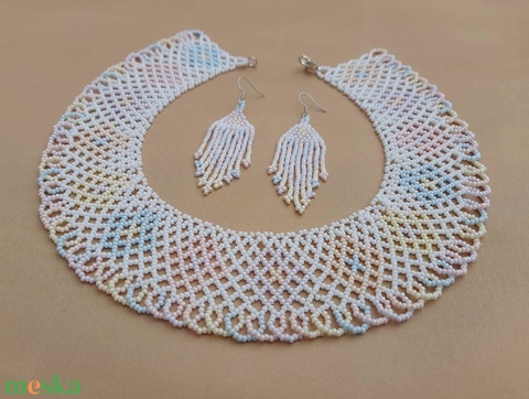 Pasztell színű virágos gyöngygallér - fülbevaló, gyöngynyaklánc, gyöngyékszer