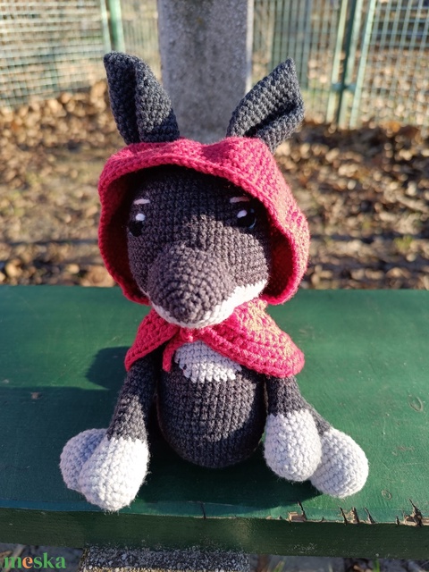 Horgolt farkas piros kabátkával