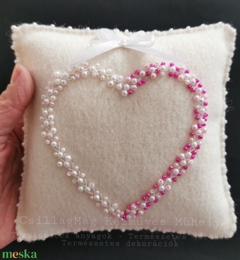 Esküvői Gyűrűpárna Gyöngyökkel Szívvel Egyedi Romantikus Fenntartható Természetes Minőségi Anyagok Gyapjúfilc Gyapjú