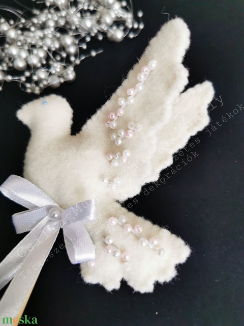 Esküvői Hófehér Galamb Környezettudatos Köszönőajándék Vendégajándék Hímzéssel Gyöngyökkel Egyedi Ajándék Gyapjúfilcből