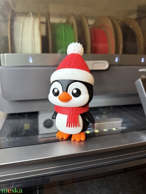 Téli Kispingvin – Egyedi Karácsonyi Dekoráció Bojtos Sapkában (13 cm)