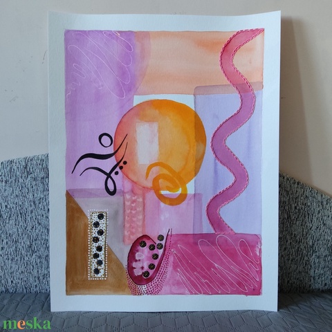 - Anyaga: akvarell karton, akvarell festék, akril, hímzőfonal