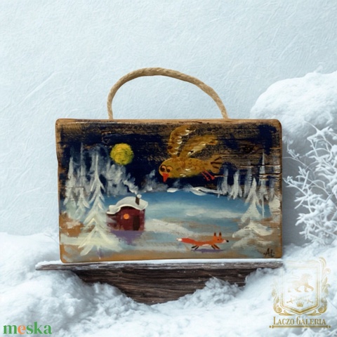 Téli menedék - Rusztikus Festett Fatábla - Falra akasztható - Ajándék ötlet - Gyerekszoba