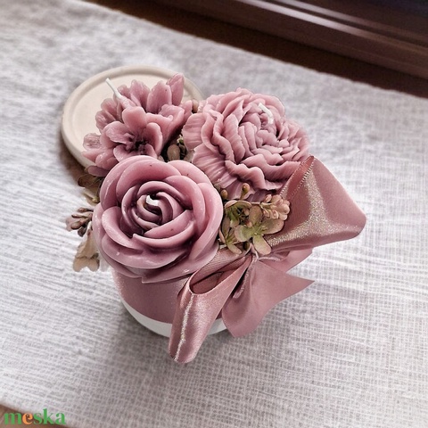 Gyertya szett virágcsokor formába kötve