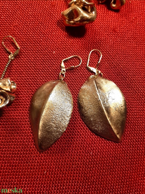 Arany levél fülbevaló Plast-Kitt gyurmából