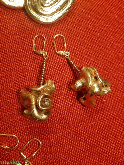 - Anyaga: plast-kitt gyurma, fém szerelékek (allergiamentes), óarany üveggyöngyök