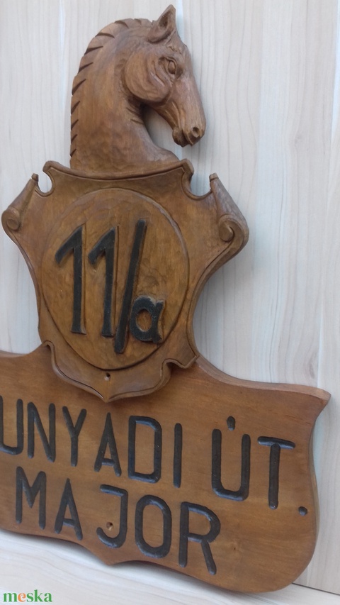 lovas házszámtábla fatábla lovaskép falikép fafaragás lovas ajándéktárgyak lovastermékek lovaglás