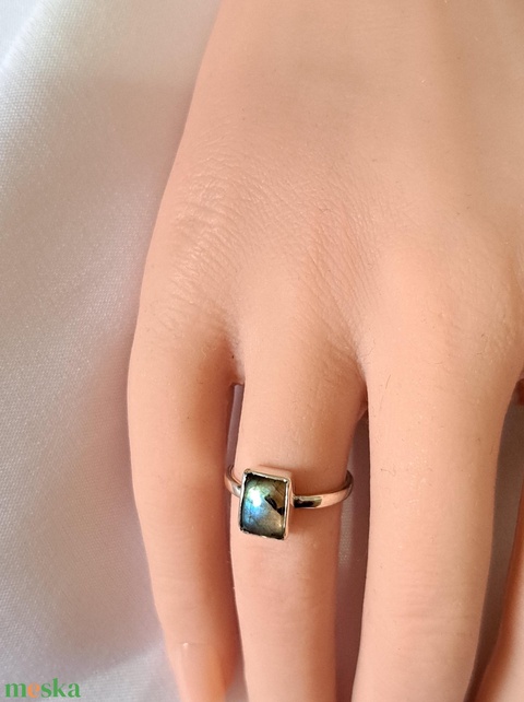 Négyzetes labradorit gyűrű - zöldes/barnás árnyalatú