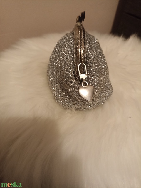 Ez a horgolt retro pénztárca különleges fényével minden alkalmat ünnepivé varázsol. Az ezüst fonal csillogása és a klasszikus forma együtt idézik meg a múlt nosztalgiáját, miközben modern, stílusos kiegészítőként illik a mindennapokhoz is.