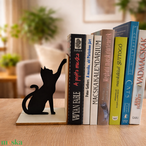 Ülő fekete cica könyvtámasz