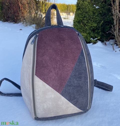 Elegáns, geometrikus mintás hátitáska – szürke–bordó árnyalatokban
