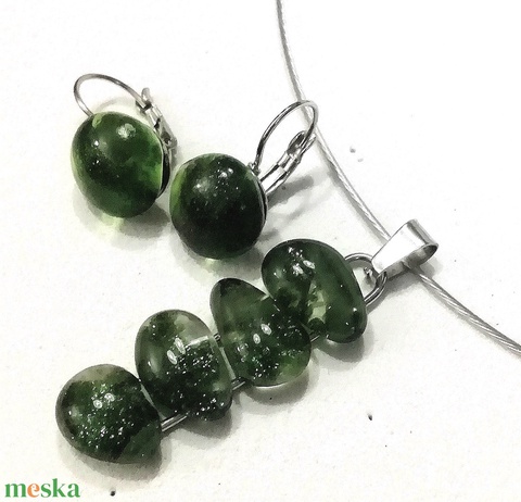 AKCIÓ! NEMESACÉL! Zöld fények, kavicsos üvegékszer szett.