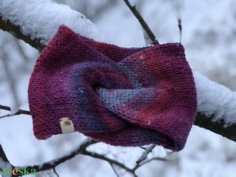 málnaszüret. Kézzel kötött puha, meleg fülvédő