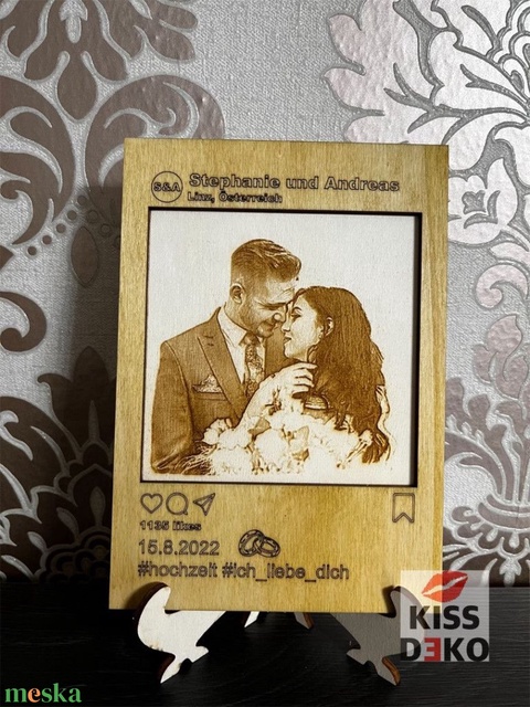Egyedi Gravírozott Fényképes Fa Keret – Feliratos, Tartóval (Saját Fotóval)