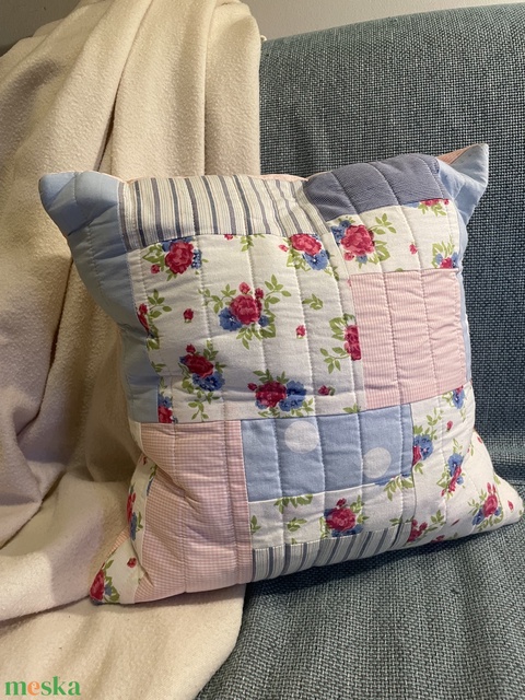 Pihe-puha, romantikus patchwork díszpárna huzat, remekül illik romantikus, vintage, country vagy skandináv stílusú enteriőrbe, de jól mutat letisztult, modern kanapén is – teheted fotelbe, olvasósarokba, ágyra vagy gyerekszobai kuckóba. Ha több darabot is választasz, könnyedén összehangolhatod a nappali más textiljeivel, például takarókkal, ágytakaróval vagy függönnyel.