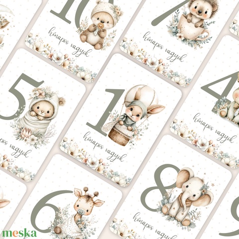 Erdei állatos Baba Mérföldkő Kártyák