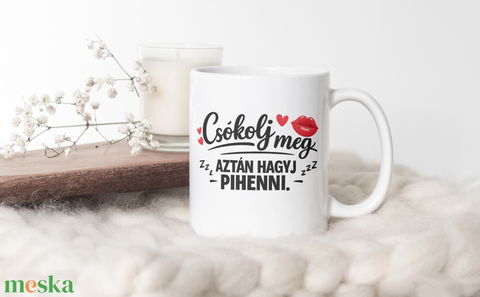 „Csókolj meg, aztán hagyj pihenni” vicces szerelmes bögre – ajándék pároknak