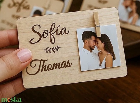 Egyedi esküvői köszönetajándék - fényképhez fa csipesszel