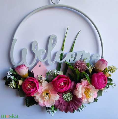 Welcome tavaszi ajtódísz – virágzó otthon koszorú