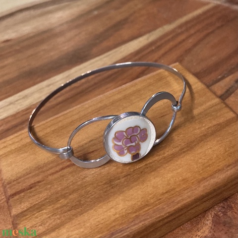 Mentett porcelán darabok - nemesacél karperec, virágos - 3 méretben