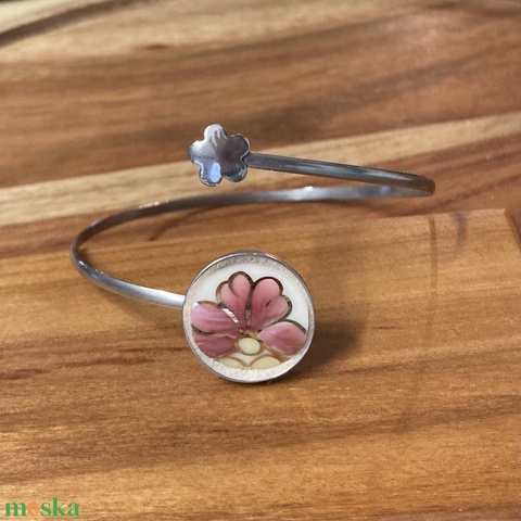 Mentett porcelán darabok - nemesacél karperec, virágos - állítható
