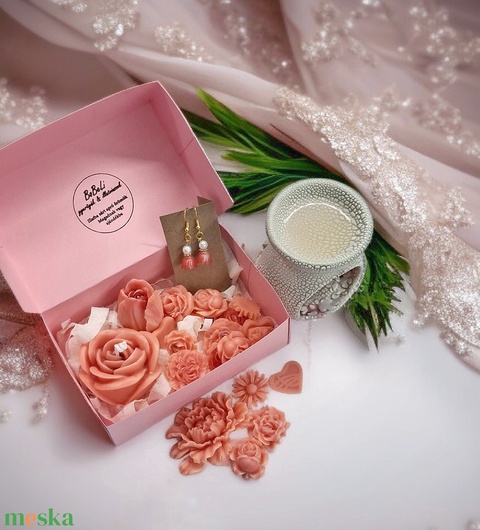 Eper illatú kényeztető ajándékbox nőknek , fülbevalóval