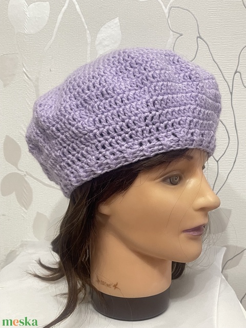 Horgolt barett sapka Levendula