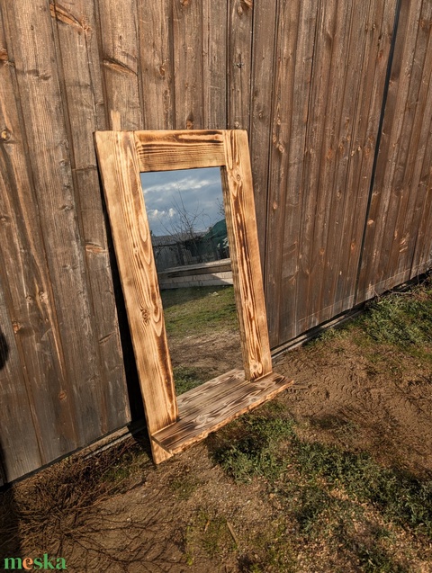 Fürdőszoba tükör polccal, rusztikus képkeret natúr színben