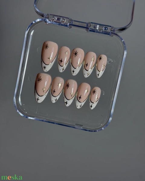Kézzel készített, egyedi press-on körömök (francia-arany díszítéssel)