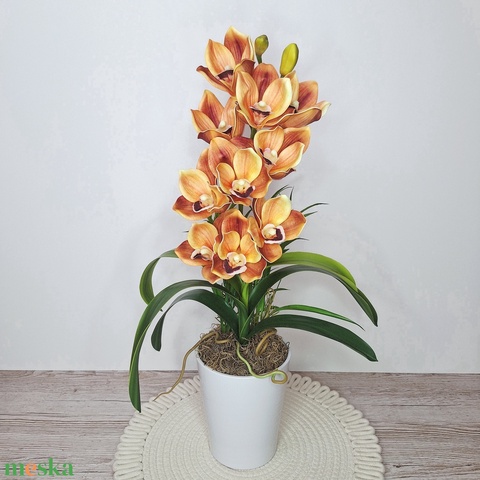 Cymbidium orchidea dekoráció kerámia kaspóban-narancs