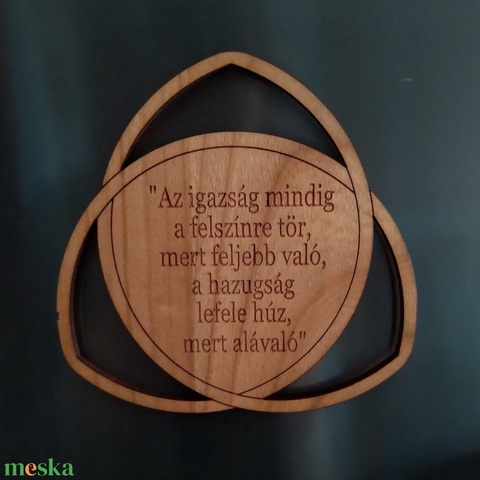 Reggeli lélek morzsa fa hűtőmágnes – gravírozott, szimbolikus üzenet fából