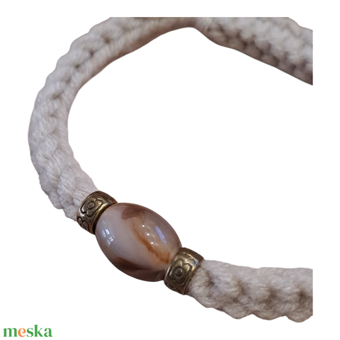 Beige horgolt karkötő gyöngyökkel.