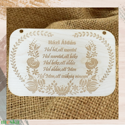Áldás fa tábla házi áldás gravírozott falikép igés fatábla