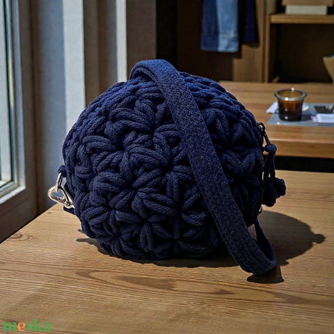 Macaron, horgolt kerek oldaltáska – mélykék
