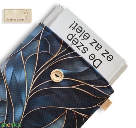 Bélelt könyvtok, vízálló textilből, kék mintával - Artiroka design
