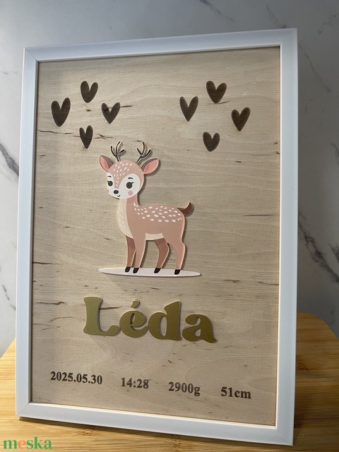 Őzikés baba képkeret / Képkeret születési adatokkal / Babaköszöntő