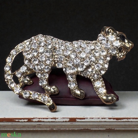 Nagymacska Vintage BROSS az 1980-as évekből, gyönyörű elegáns strasszos kitűző, pin szövetkabátra, blúzra, blézerre