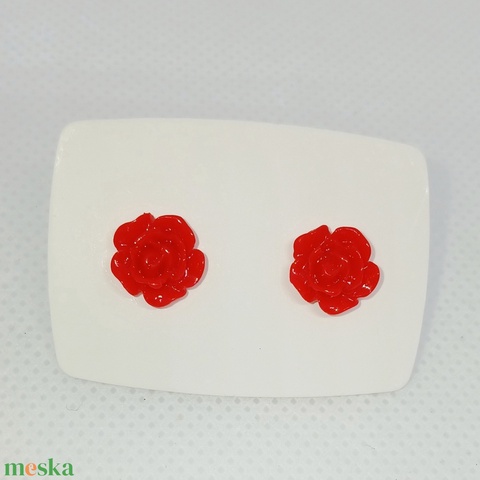 Piros színű, rózsa alakú fülbevaló