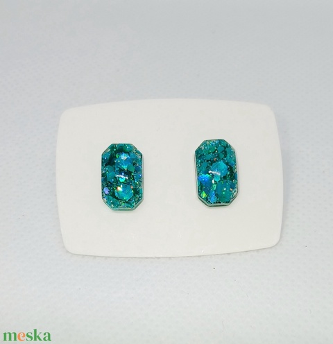 Türkiz színű flitterrel, csillámmal díszített fülbevaló