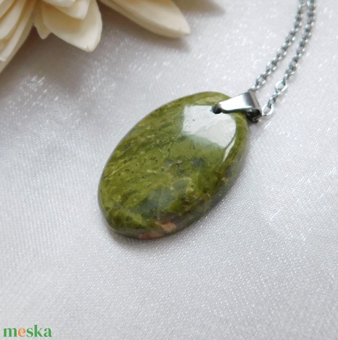 Orvosi acél szerelékre akasztottam ezt a különlegesen szép unakit medált.