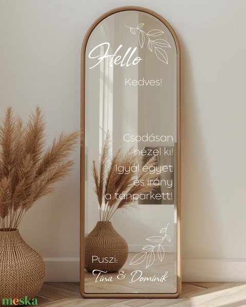Esküvői tükör matrica - leveles motívummal