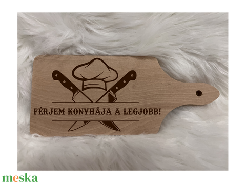 „Férjem konyhája a legjobb” gravírozott vágódeszka