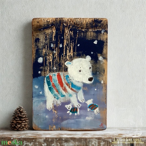 Jegesmacik - Rusztikus Fatábla, Ajándék ötlet - Egyedi Falidísz, Medve, Mackó, Jegesmedve