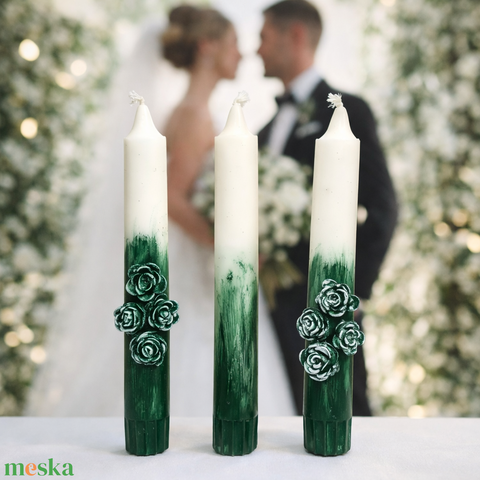 Vintage zöld esküvői gyertyaszett